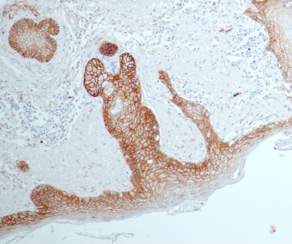 Application: IHC (FFPE) Host: Rabbit Subclass: IgG Immunogen: Synthetic peptide from human EGFR Dilution range: 1:100 – 1:200 Cellular location: Membrane Control: lung adenocarcinoma