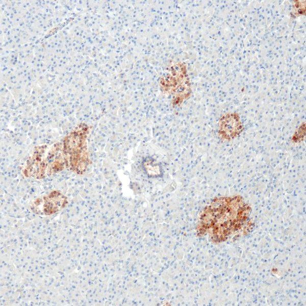 Application: IHC (FFPE) Host: Rabbit Subclass: IgG Immunogen: Synthetic peptide from human NSE Dilution range: 1:20 – 1:100 Cellular location: Cell nucleus Control: Pancreas, Brain