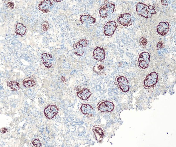 Application: IHC (FFPE) Host: Rabbit Subclass: IgG Immunogen: Synthetic peptide from human WT1 Dilution range: 1:100 – 1:200 Cellular location: Cell Control: nucleus Kidney, malignant mesothelioma